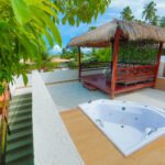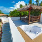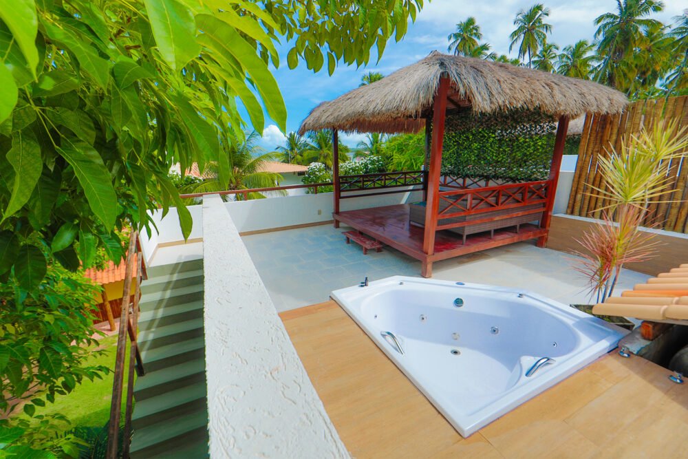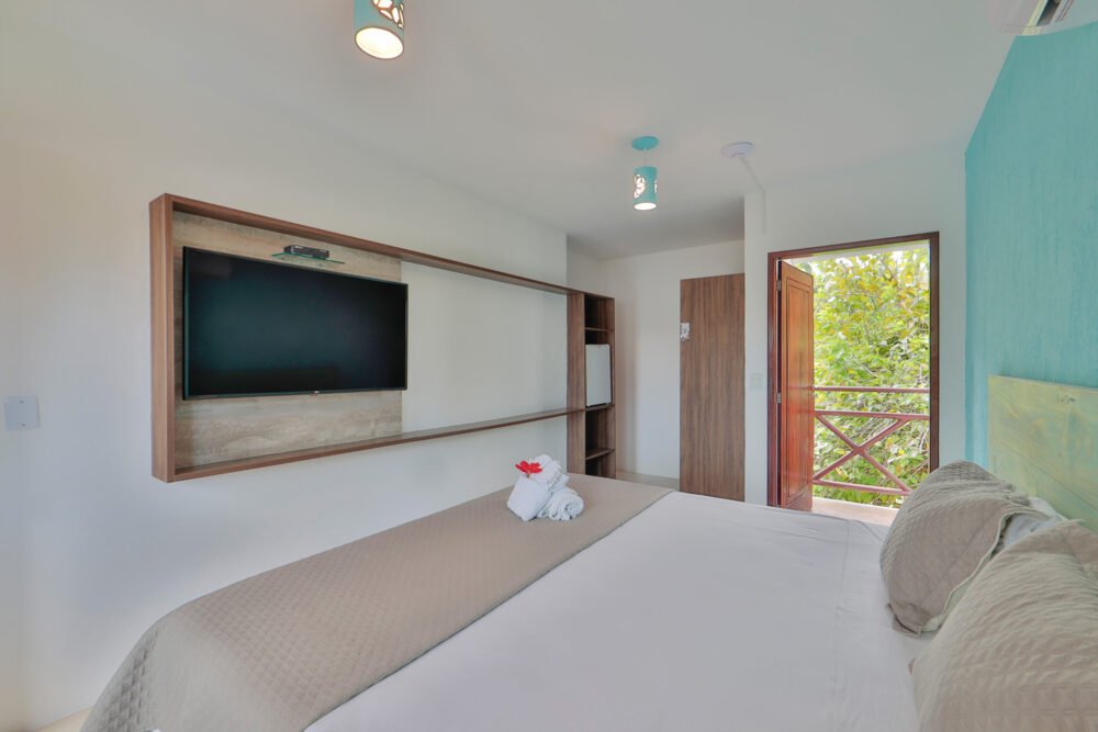 Este quarto possui um andar extra com acesso exclusivo, banheira de hidromassagem e solarium. Nossos quartos são todos equipados com mobiliário exclusivo, lençóis nobres 400 FIOS, SMARTV 40”, cama box King Size, ducha com aquecimento solar, wi-fi grátis, frigobar, secador de cabelo. Tudo com muito conforto..